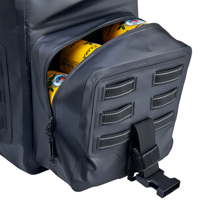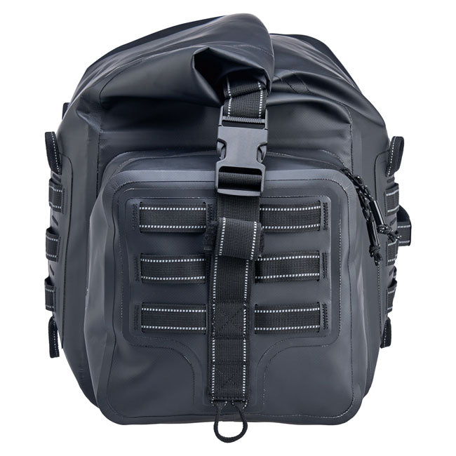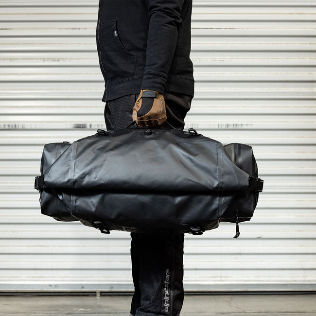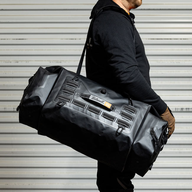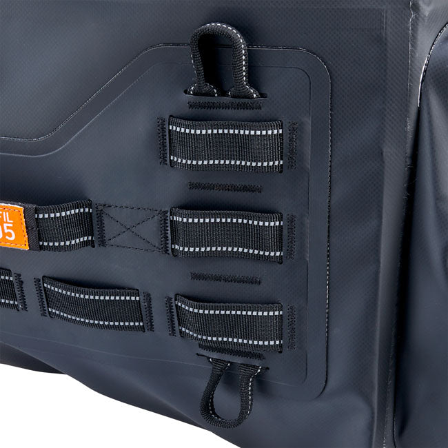 Torba EXFIL-105 Dry Bag jest największą torbą w ofercie EXFIL, stworzoną z myślą o długich podróżach, podczas których niezbędna jest maksymalna pojemność i pełna wodoodporność. Zaprojektowana tak, aby można ją było umieścić bokiem na dużym bagażniku, siedzeniu lub nad sakwami, pomieści aż 105 puszek lub wszystkie niezbędne rzeczy potrzebne podczas długiej podróży motocyklem. Centralna komora jest 100% wodoodporna i pyłoszczelna dzięki zgrzewanym termicznie szwom, a duże kieszenie na końcach zapewniają szybki dostęp bez konieczności zdejmowania torby.