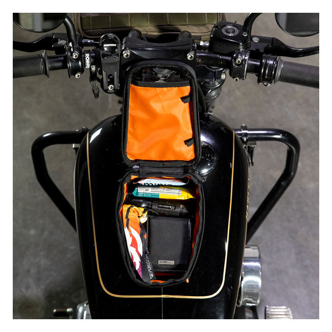 Mini torba na zbiornik paliwa EXFIL-2 to kompaktowe rozwiązanie do przechowywania przedmiotów, przeznaczone do codziennej jazdy. Jest wystarczająco mała, aby nie przeszkadzać, ale jednocześnie wystarczająco pojemna, aby pomieścić niezbędne przedmioty. Można ją błyskawicznie przymocować do każdego stalowego zbiornika za pomocą trzech silnych magnesów wewnętrznych, bez konieczności stosowania pasków.