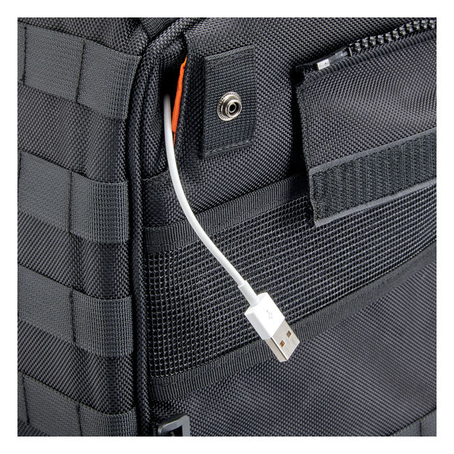 - Ukryty port kablowy do ładowania urządzeń wewnątrz torby