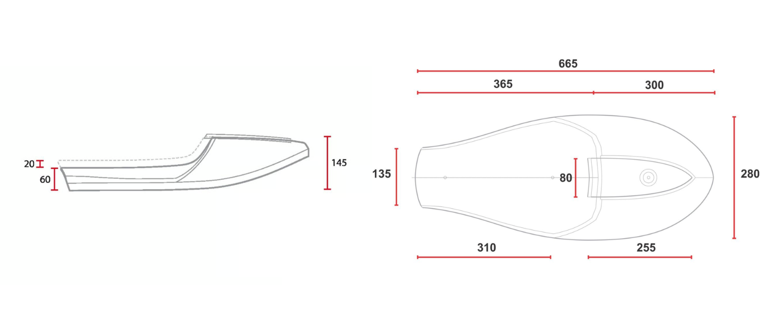 Jeśli budujesz motocykl typu neo café, kształt siedzenia ma ogromne znaczenie. To siedzenie solo charakteryzuje się ostrzejszym, bardziej nowoczesnym profilem tylnej części. Górna część jest tapicerowana syntetyczną skórą, natomiast osłona pozostaje nieobita, aby stworzyć wyraźny kontrast. Model, który natychmiast nadaje Twojemu motocyklowi bardziej nowoczesny styl café racer.