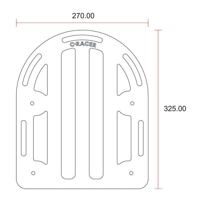 Bagażnik C-Racer nr 1 to bagażnik z szczotkowanego aluminium z czterema punktami mocowania, przeznaczony do zastosowań niestandardowych. Jest wyposażony w czarne, malowane proszkowo stalowe wsporniki. Dzięki maksymalnej nośności 5 kg idealnie nadaje się do przewożenia małych toreb lub sprzętu.