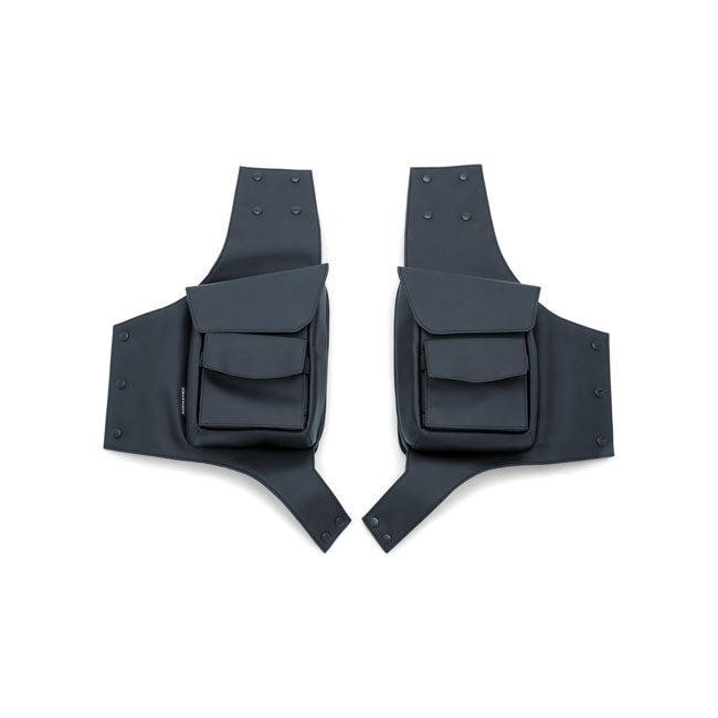 Torba Kuryakyn montowana jest przed sakwami na osłonach sakw, zapewniając szybki dostęp do drobnych niezbędnych przedmiotów, takich jak telefony, portfele lub okulary przeciwsłoneczne. Torby wykonane są z wysokiej jakości sztywnego winylu odpornego na promieniowanie UV i zachowują swój kształt niezależnie od tego, czy są puste, czy pełne. Prosty, kompaktowy design z magnetycznym zamknięciem i wewnętrzną kieszenią z siatki zapewnia bezpieczeństwo i łatwy dostęp do przechowywanych przedmiotów.