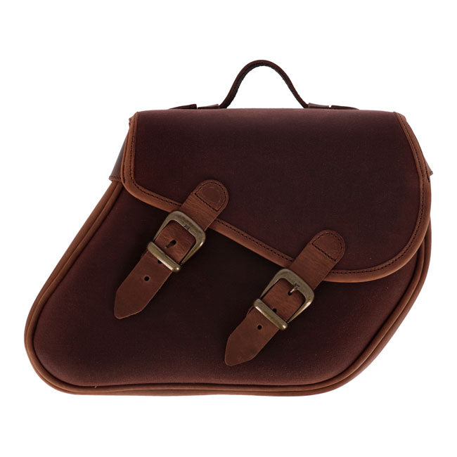 Torby Heritage Click-On nadają Twojemu motocyklowi ponadczasowy styl vintage i nowoczesną praktyczność. Wykonane ręcznie z odpornej na warunki atmosferyczne woskowanej bawełny i grubej, garbowanej roślinnie skóry bydlęcej licowej.