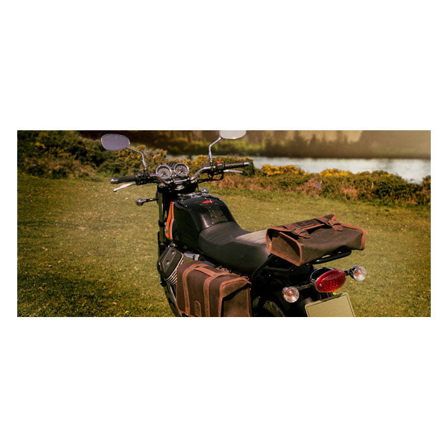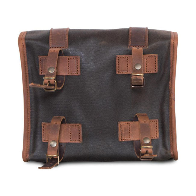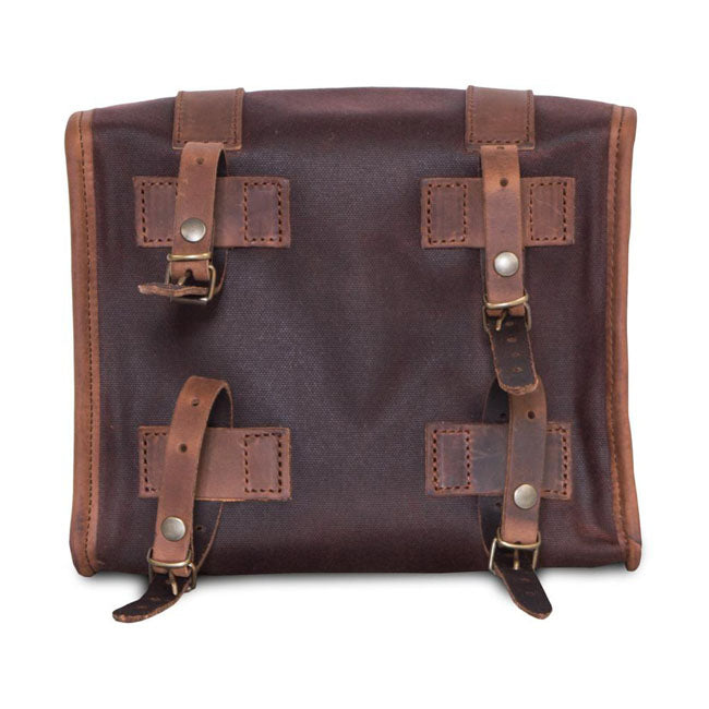 Torba Mini Ammo Vintage to kompaktowa torba w stylu retro, stworzona z myślą o klasycznych i retro motocyklach. Wykonana ręcznie z 22-uncjowego woskowanego płótna bawełnianego i garbowanej roślinnie skóry licowej, zapewnia trwałość, wodoodporność i vintage'owy wygląd, który pięknie się starzeje.