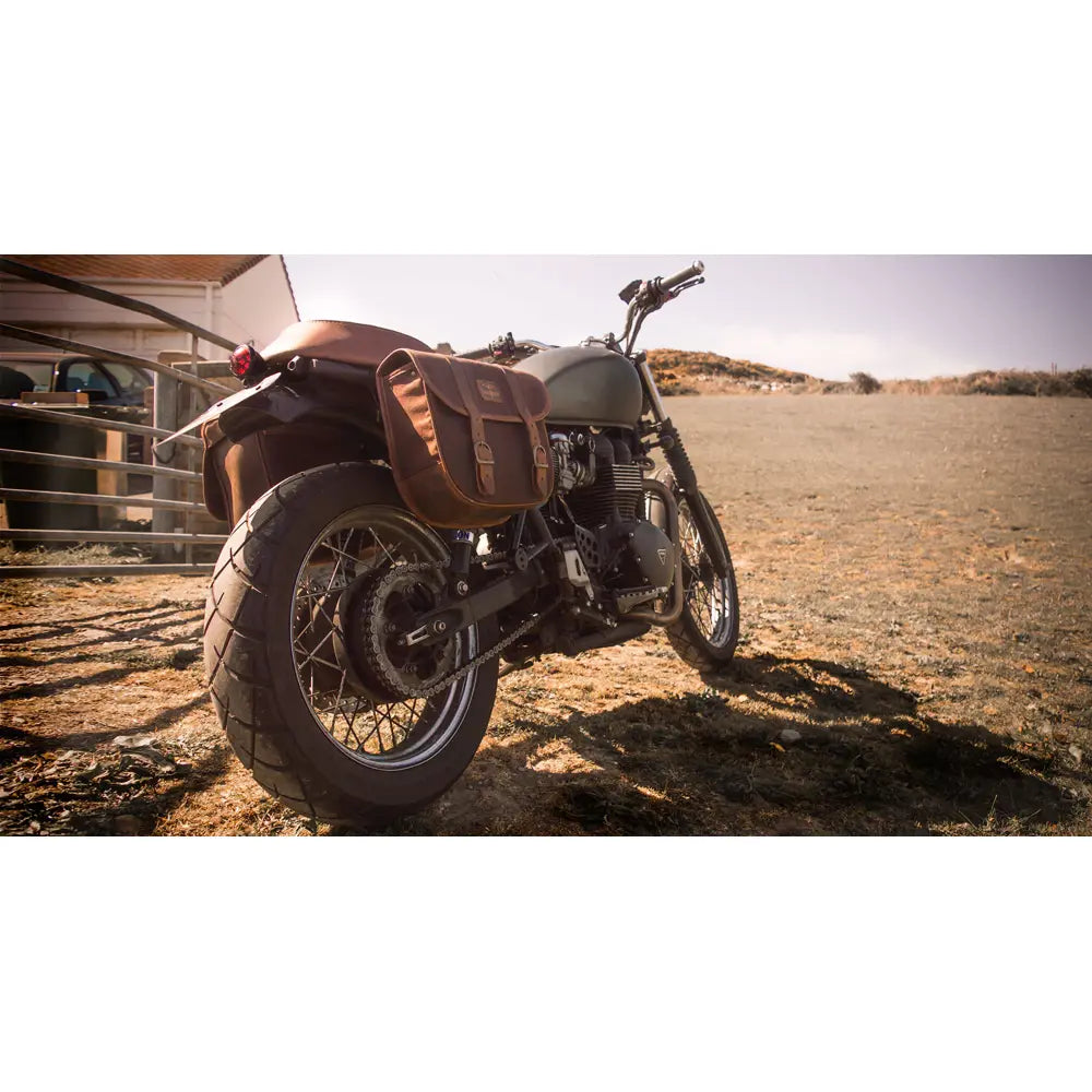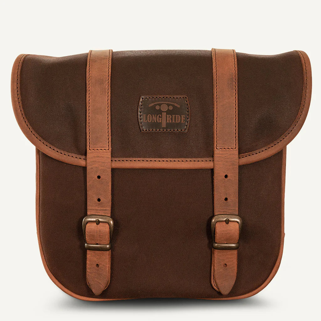 Te torby motocyklowe Longride Pannier w stylu vintage nadają Twojemu motocyklowi klasyczny wygląd i są bardzo praktyczne. Wykonane ręcznie z odpornej na warunki atmosferyczne woskowanej bawełny i grubej, garbowanej roślinnie skóry bydlęcej licowej. Regulowana konstrukcja sprawia, że pasują one do większości motocykli i umożliwiają zamocowanie lub zdjęcie sakw z motocykla w ciągu kilku sekund.