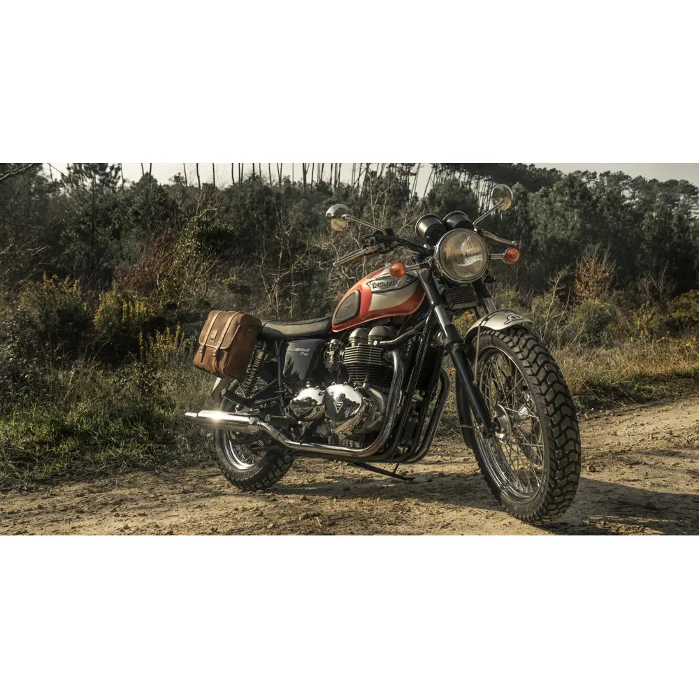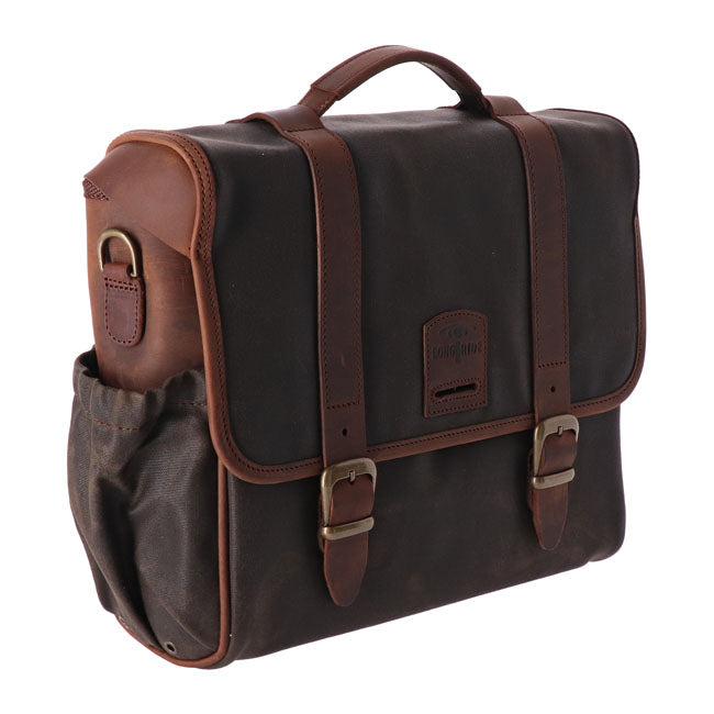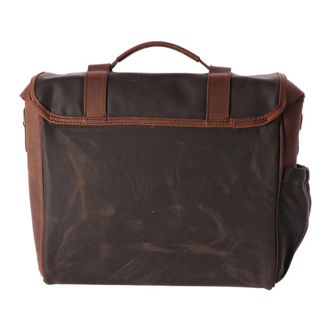 Torba motocyklowa Racer Click-On w stylu vintage nadaje Twojemu motocyklowi ponadczasowy styl retro i nowoczesną praktyczność. Wykonana ręcznie z odpornej na warunki atmosferyczne woskowanej bawełny i grubej, garbowanej roślinnie skóry bydlęcej licowej.