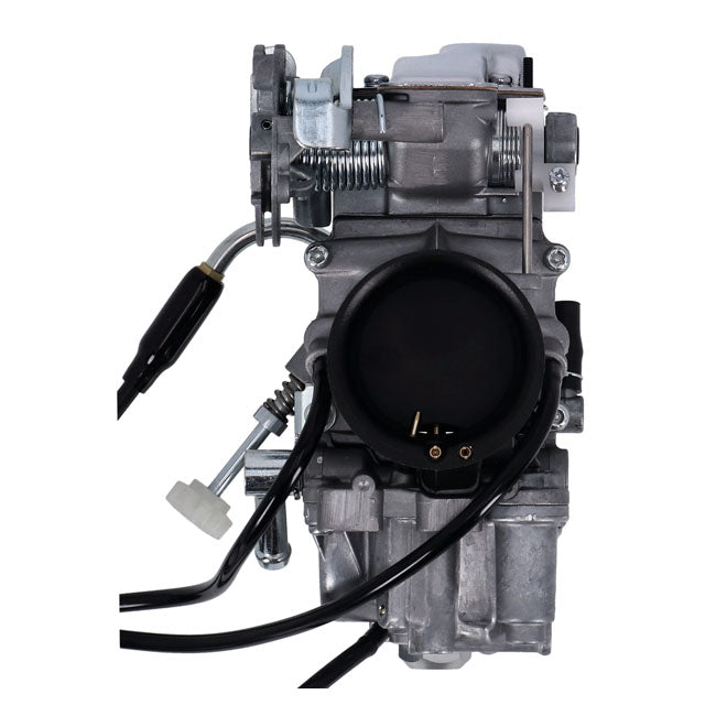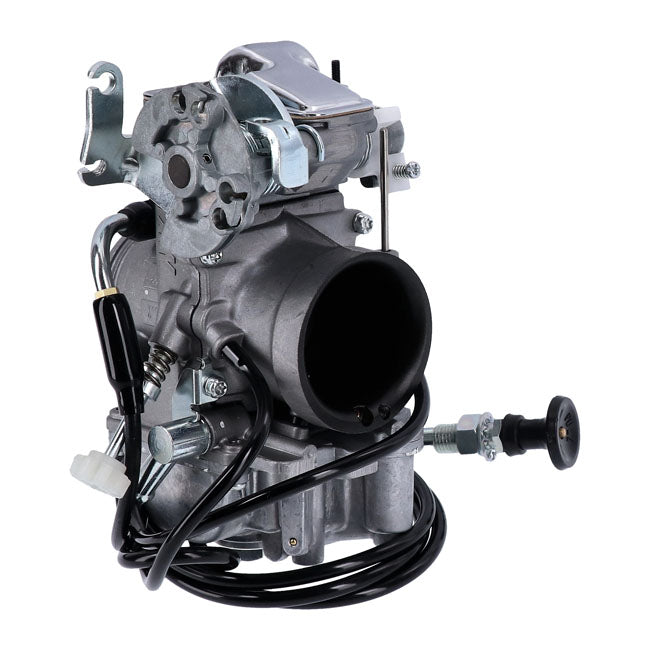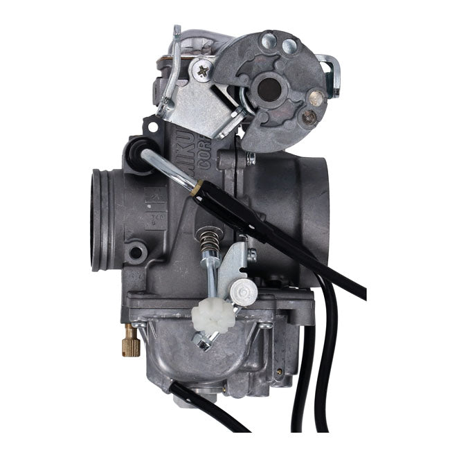 Płaski gaźnik suwakowy od Mikuni który oferuje znaczną poprawę wydajności w porównaniu ze starszymi gaźnikami z okrągłym suwakiem.