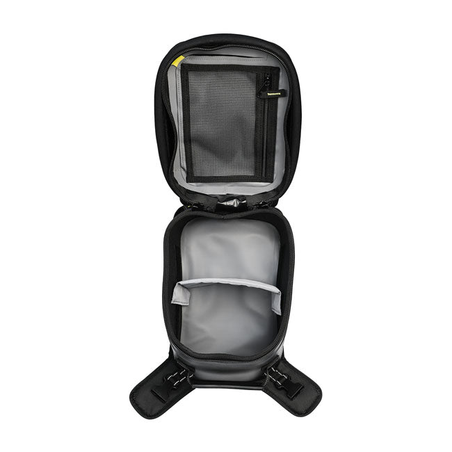 Wodoodporna torba na zbiornik paliwa Hurricane Adventure została zaprojektowana z myślą o wymagających warunkach jazdy enduro, dual-sport i adventure. Wykonana z plandeki PVC poddanej obróbce UV, z elektronicznie zgrzewanymi szwami, jest w pełni wodoodporna i chroni sprzęt przed deszczem, kurzem i brudem. Dzięki paskom z szybkim zapięciem ułatwiającym tankowanie, antypoślizgowej podstawie ochronnej i kieszeni na mapę przystosowanej do obsługi ekranów dotykowych ta torba o pojemności 8 litrów jest niezawodnym towarzyszem podczas trudnych wypraw.