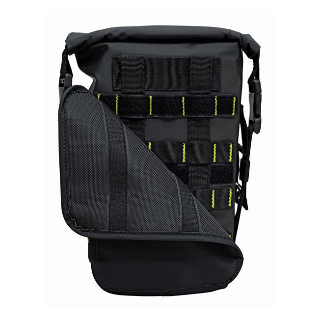 Hurricane RiggPak to wszechstronna, wodoodporna torba, którą można zamontować na barierkach ochronnych, bagażnikach lub siedzeniach, aby uzyskać dodatkowe miejsce do przechowywania podczas każdej jazdy. Wykonana z plandeki PVC poddanej obróbce UV, z elektronicznie zgrzewanymi szwami, jest 100% wodoodporna i zaprojektowana z myślą o trudnych warunkach. Zamknięcie typu roll-top z klamrami szybkiego zwalniania zapewnia bezpieczeństwo i suchość sprzętu, a system MOLLE umożliwia łatwe mocowanie dodatkowych akcesoriów.
