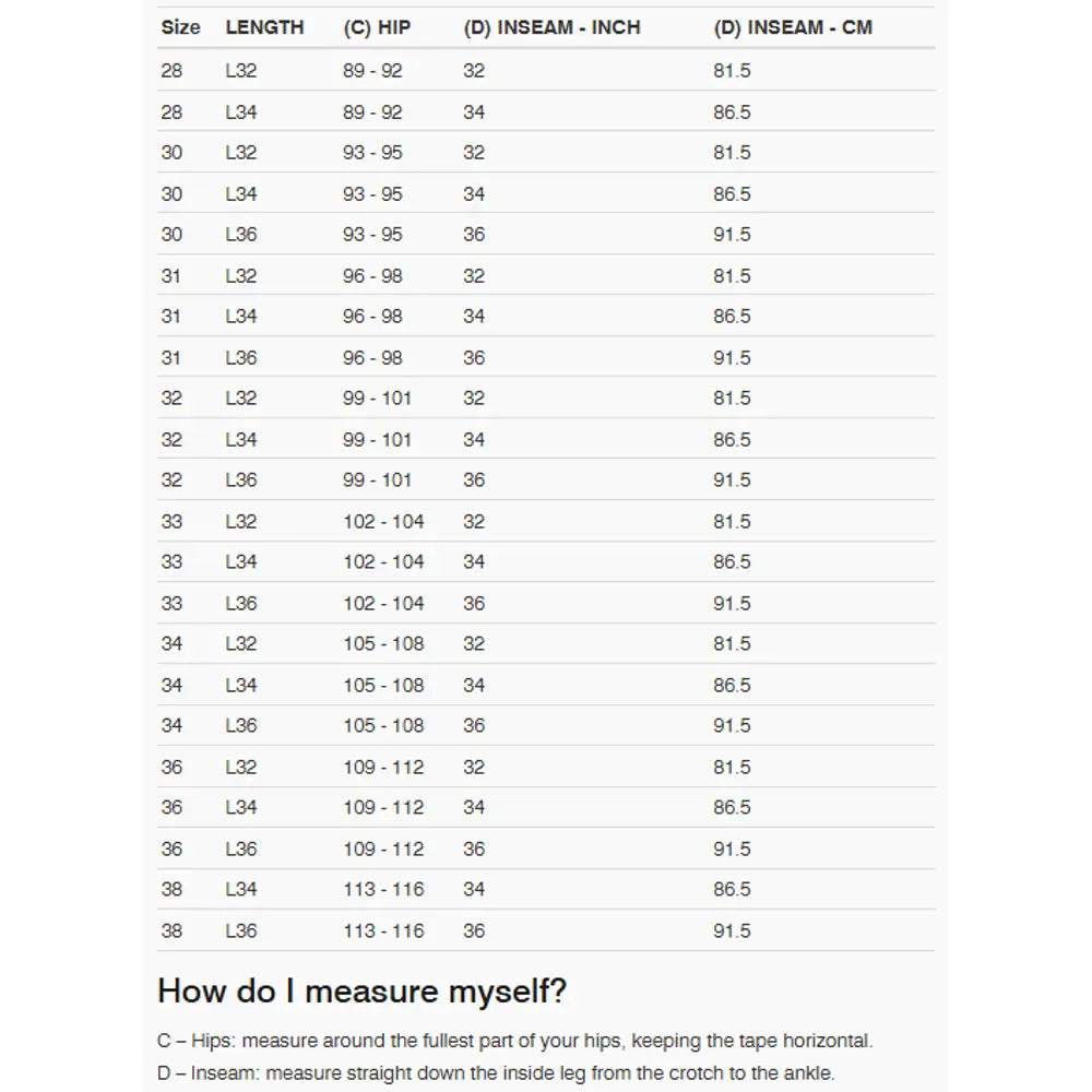 - Tapered fit – relaxed at the top, slim at the ankle