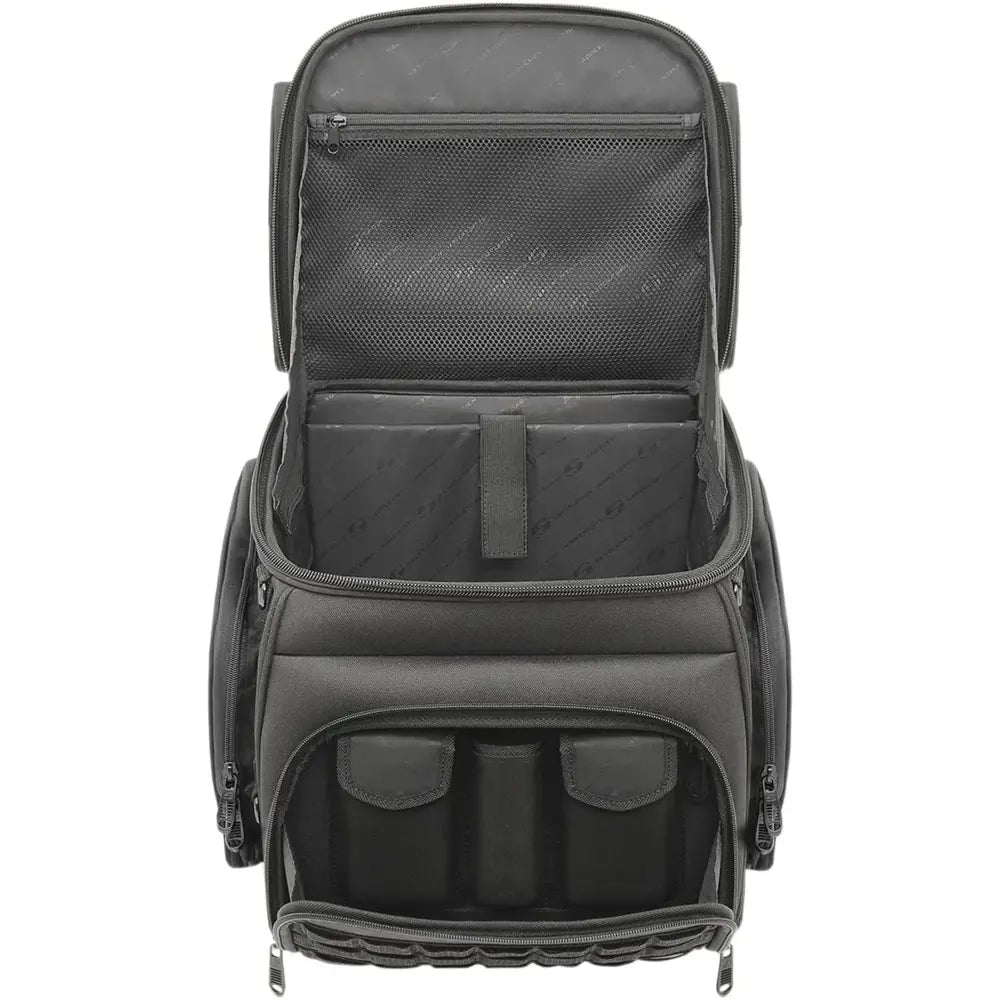Ta torba jest przeznaczona do stosowania w wielu różnych motocyklach i można ją zamontować na siedzeniu, bagażniku lub sissy barze za pomocą jednego z dwóch dołączonych systemów. Sztywna konstrukcja zachowuje swój kształt nawet wtedy, gdy torba jest pusta, a połączenie tkaniny i paneli przypominających skórę nadaje jej solidny, gotowy do jazdy wygląd. Dzięki wielu przegródkom, kieszeniom i punktom mocowania MOLLE torba jest przeznaczona do przenoszenia dużych ładunków, zapewniając jednocześnie porządek i łatwy dostęp do sprzętu.