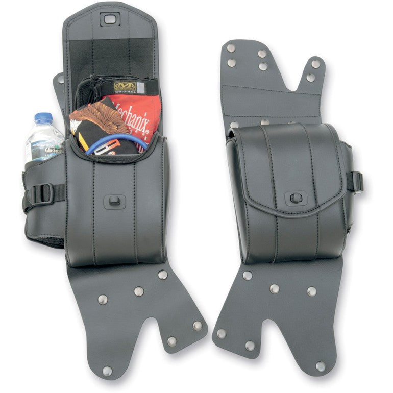 Te torby ochronne zapewniają dodatkowe miejsce do przechowywania w modelach Harley Touring wyposażonych w osłony sakw. Wykonane z materiału SaddleHyde o grubości 3 mm, są odporne na promieniowanie UV i warunki atmosferyczne, a ich sztywna konstrukcja pozwala zachować kształt. Każda komora jest zapinana na zamek błyskawiczny i chroniona klapami chroniącymi przed warunkami atmosferycznymi, a także zamkami ćwierćobrotowymi, które można zabezpieczyć mini kłódkami dla dodatkowego bezpieczeństwa. Montuje się je bez użycia narzędzi, zatrzaskując na osłonach za pomocą antypoślizgowych podkładek. W zestawie znajdują się składane siatkowe uchwyty na napoje, które można wykorzystać w razie potrzeby.