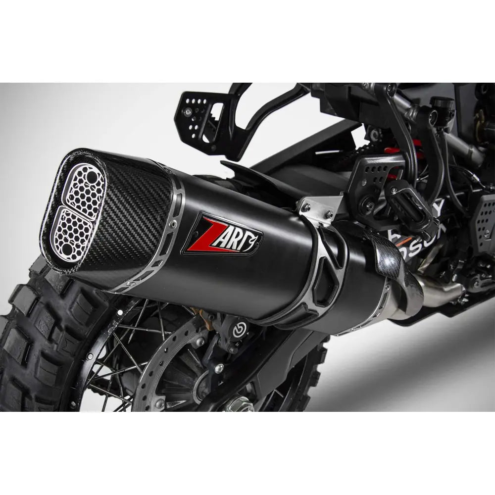 Tłumik Zard EC Euro 5 Approved Pan Am Slip-On to idealne połączenie wysokiej wydajności, trwałości i pięknego designu, dostosowane specjalnie do motocykli Harley-Davidson Pan America. Wykonany z najwyższej jakości stali nierdzewnej AISI 304 i wykończony odporną na ciepło matową czarną powłoką ceramiczną Cerakote, tłumik ten zapewnia doskonałą trwałość i oszałamiającą estetykę. Wykonana z włókna węglowego nakładka końcowa i osłona pięty podkreślają jego sportowy wygląd, jednocześnie zmniejszając masę i poprawiając prowadzenie. W pełni homologowany zgodnie z normą Euro 5, oferuje wzrost mocy o +1,2 KM przy jednoczesnym utrzymaniu poziomu hałasu w dopuszczalnych granicach, co czyni go doskonałym ulepszeniem dla entuzjastów poszukujących legalnej, bezproblemowej instalacji.